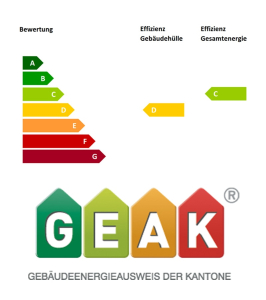Der GEAK ist die offizielle Energieetikette der Kantone und zeigt im vierseitigen GEAK-Dokument die Energieklasse von Gebäudehülle und Gebäudetechnik in sieben Klassen (A bis G) an. Der GEAK basiert auf einer einheitlichen Berechnungsmethodik. Als Grundlage gelten schweizweit die gleichen Kriterien und Berechnungswerte. So können Gebäude untereinander verglichen werden – ein grosser Vorteil zum Beispiel bei der Beurteilung von Kauf- und Mietangeboten oder bei Modernisierungsplänen.